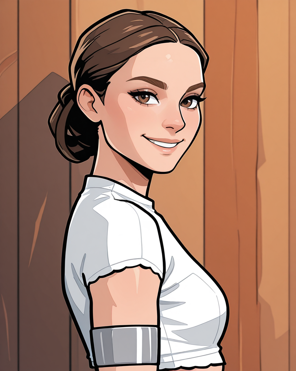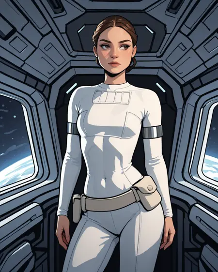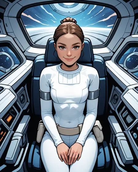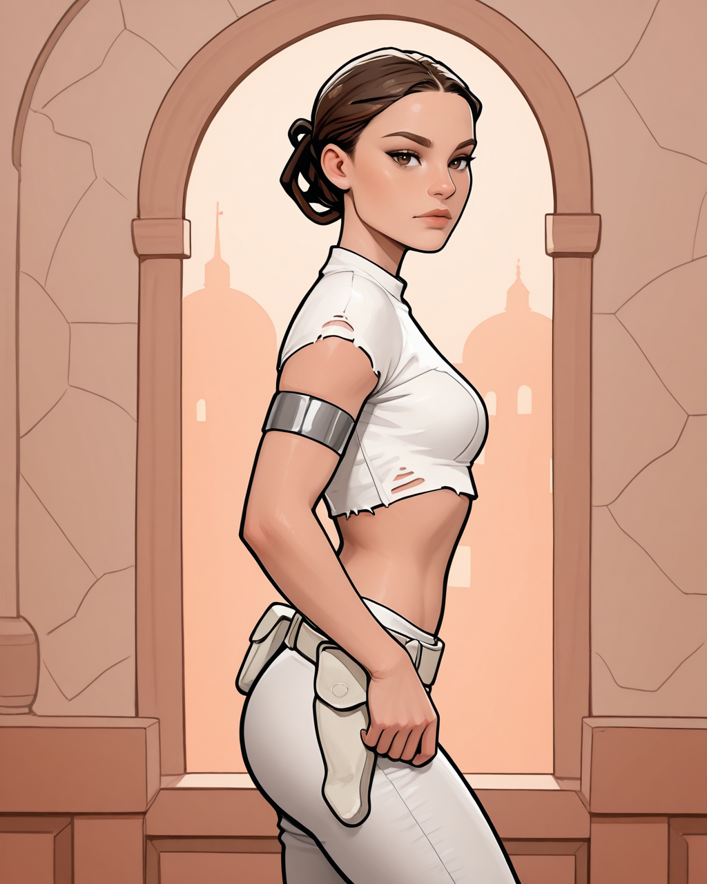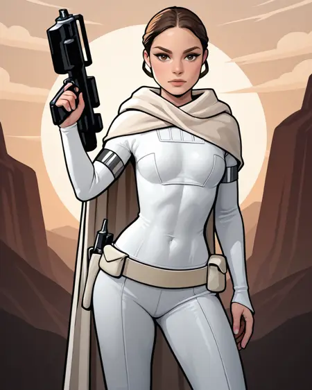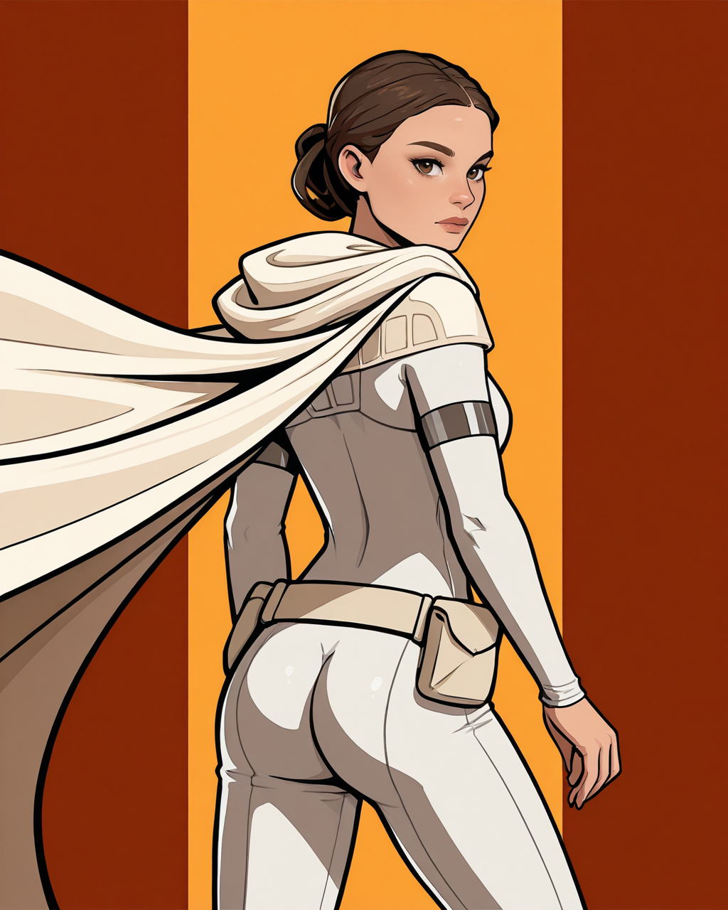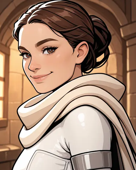 스타워즈의 패드메 아미달라. 이는 『클론의 습격』에서 그녀가 가장 유명하게 나타난 모습을 바탕으로 합니다.