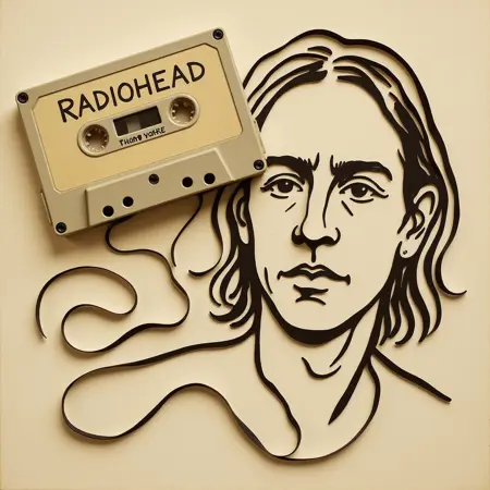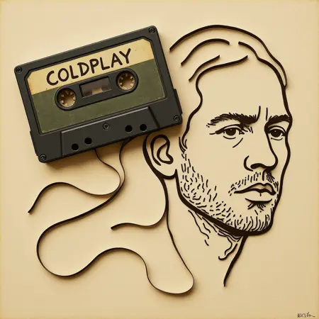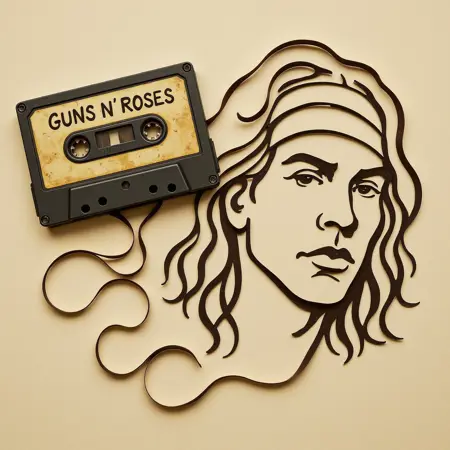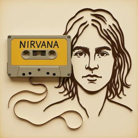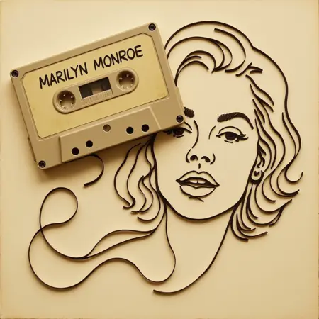 아티스트 이름 텍스트와 자석 테이프로 만든 얼굴이 있는 빈티지 스타일의 카세트