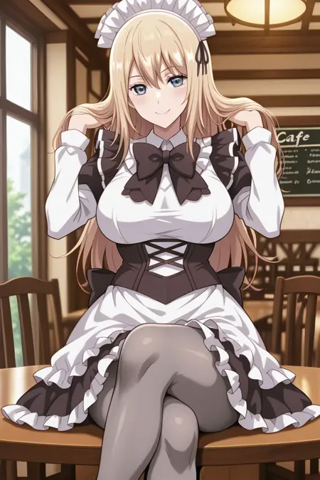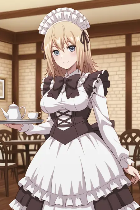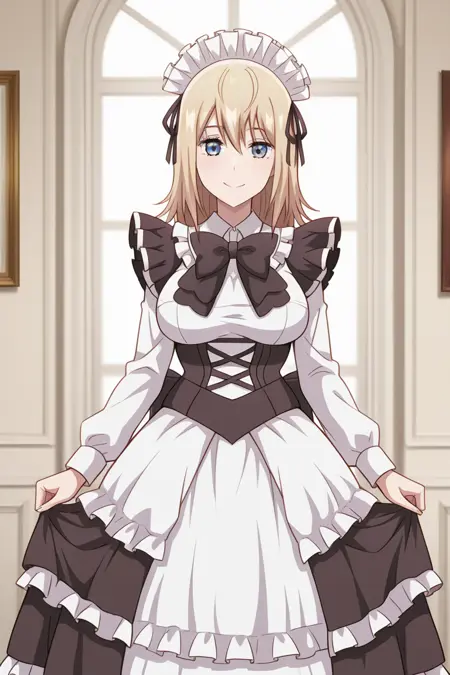 완전한 메이드 복장 이미지를 얻지 못했으므로, 메이드 복장은 불일치하며 메이드 헤드기어와 헤어 리본으로 고정됩니다. 그리고 불행히도 순수한 야간 환경에서 이미지를 생성할 수 없습니다.
