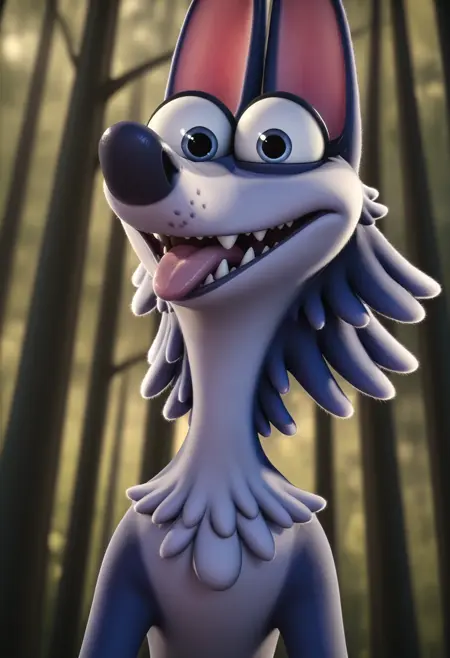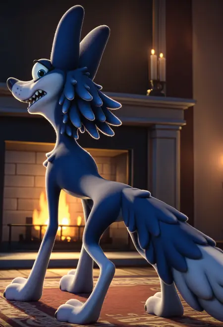gr4ilf, no humans, blue eyes, blue fur, tail, sharp teeth,