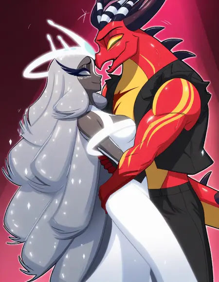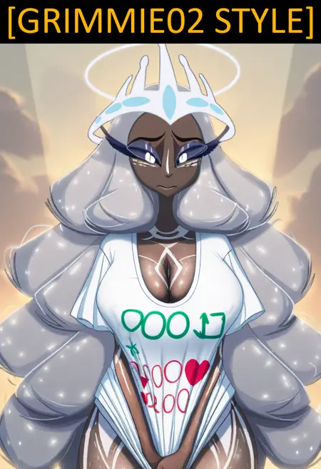 Grimmie02スタイル。TwitterおよびPatreonで活動するアーティストで、主に『Hazbin Hotel』のアートで知られている。利用可能なデータセットの性質上、Seraを最も 잘 표현한다. 他のキャラクターには、低強度のキャラクターロラを追加することで効果が得られることが多い。