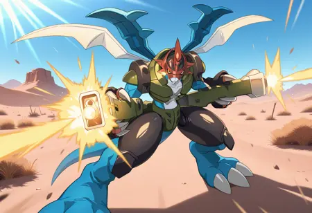 You don't need to add the Digimon (creature) prompt, nor armor as those are baked into the LoRA.