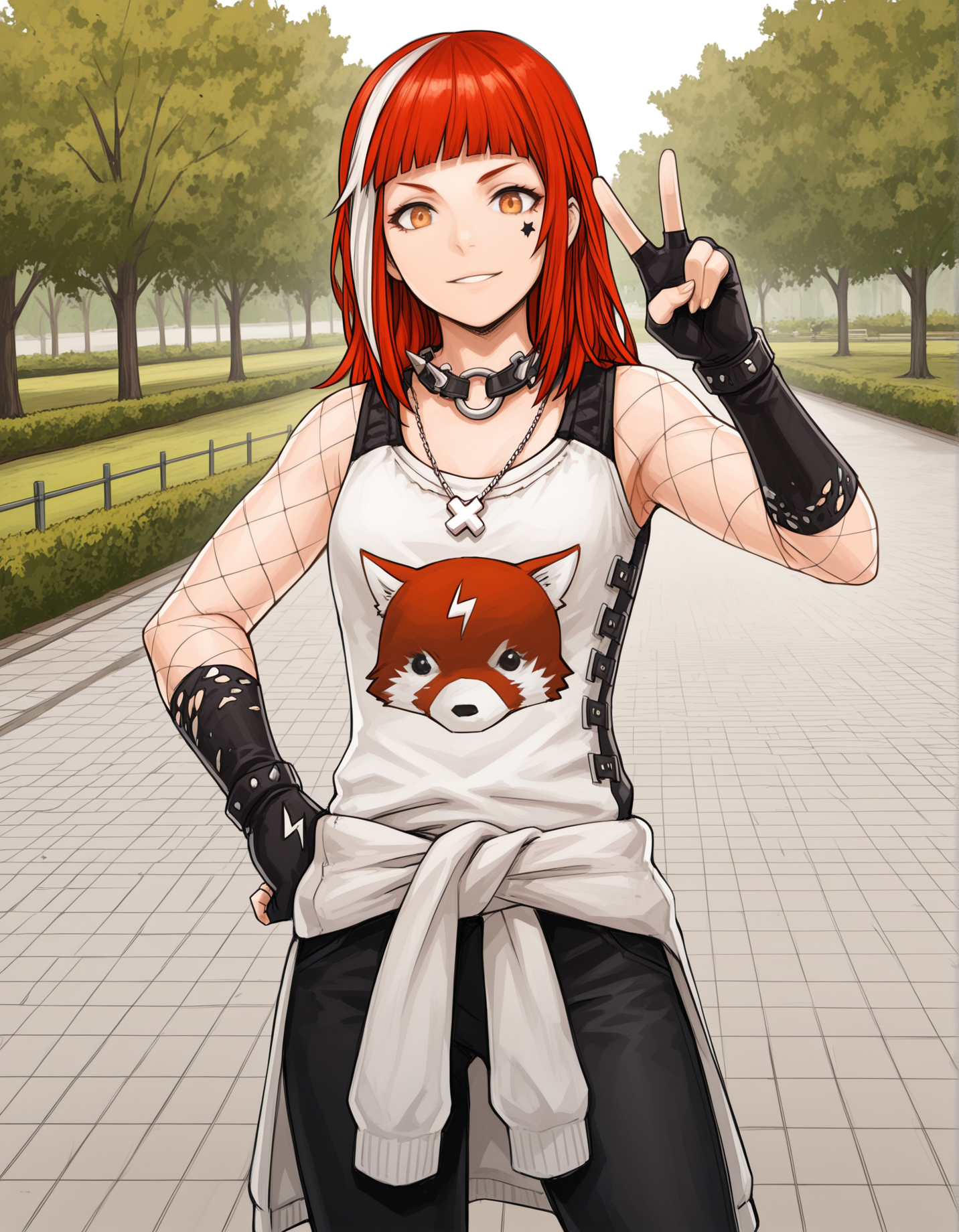 you might have to inpaint her tattoo and her collar / necklace for better details.