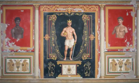 一种受庞贝壁画启发的LoRA,旨在生成带有古代壁画元素的背景和构图。它呈现鲜艳丰富的色彩,如庞贝红、蓝、黄、绿,以及装饰性图案、神话人物和古典建筑。非常适合创建历史或古典主题的环境。