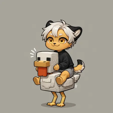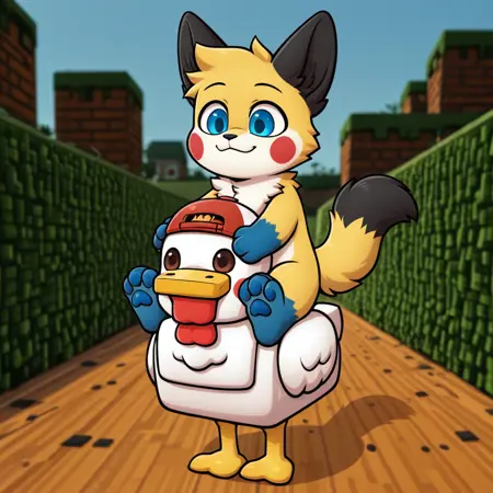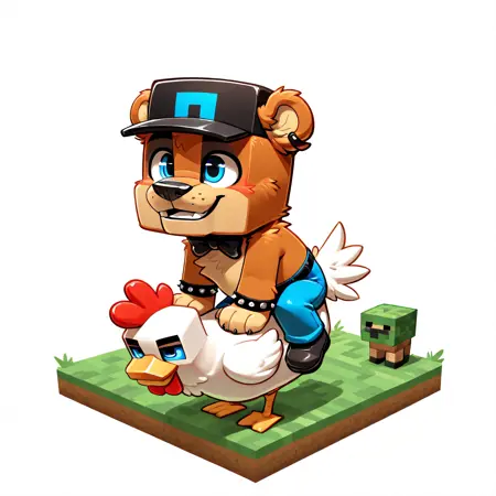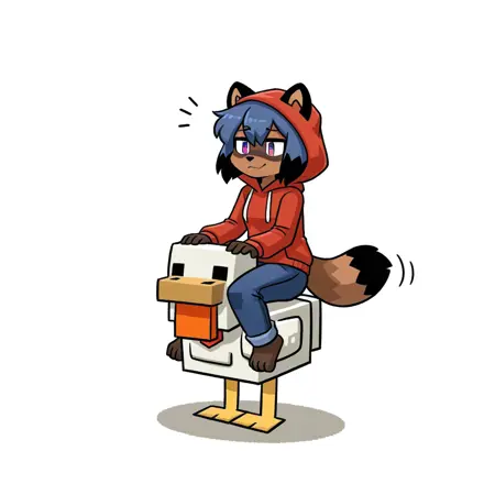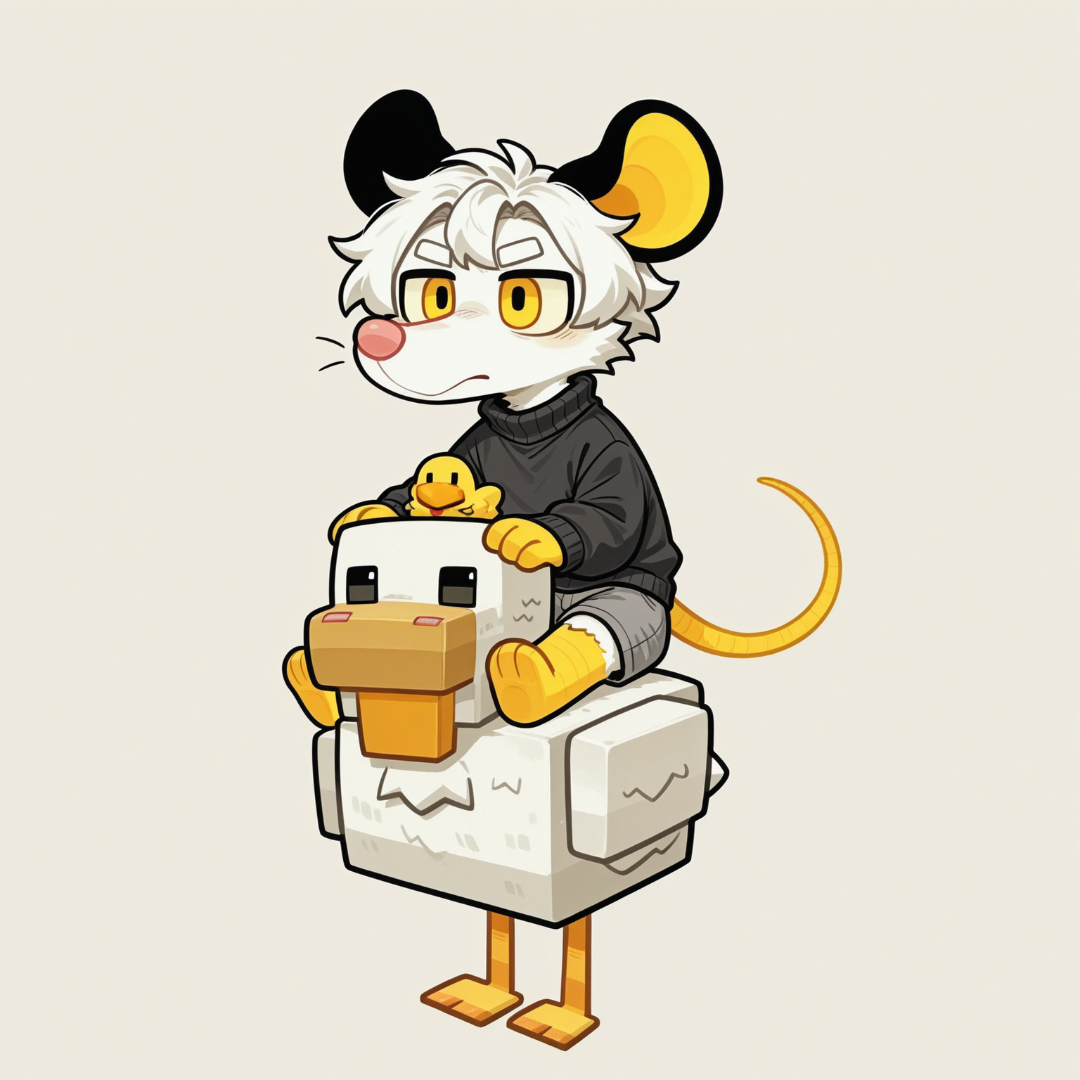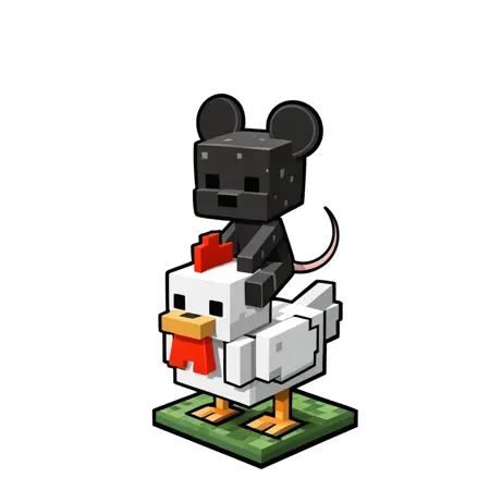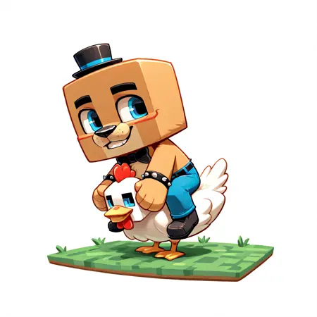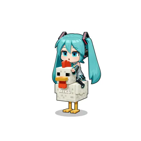 mikus-concept, minecraft chicken, riding, chicken jockey, sitting, white background, square body, square head