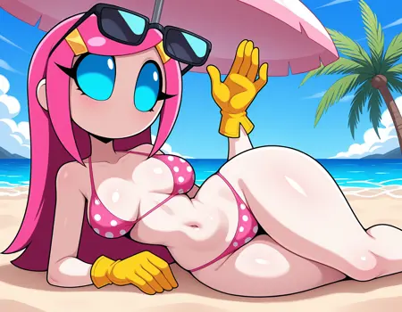 粉发,蓝眼,有色眼白,白皙皮肤,漂浮的手,漂浮的头 —— 通用标签