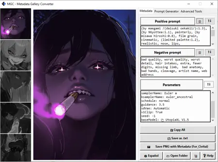 让查看、编辑和转换由 ComfyUI、Stable Diffusion 或 TensorART 生成的 .png 图像元数据变得 简单,并确保与 Civitai 完美兼容。