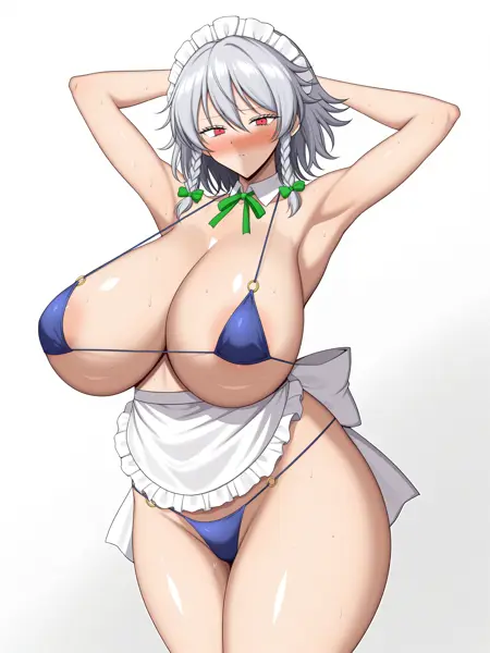 状況プロンプト:1girl、thick thighs、large breasts、bikini、pelvic curtain、loincloth