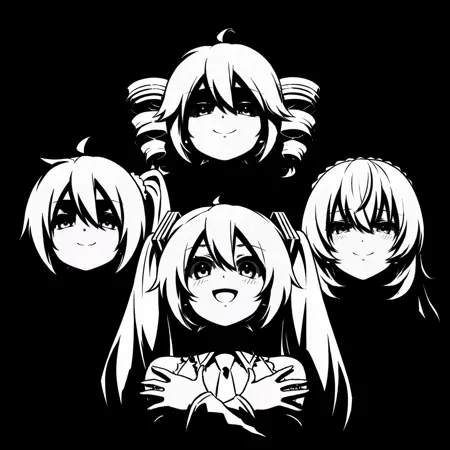 推奨タグ:閉じた口、開いた口、頭部のみ、モノクローム