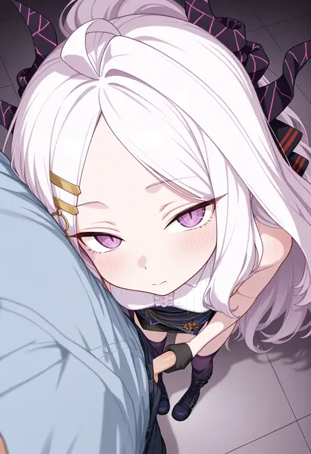 このポーズでは上からのカメラアングルが得られないため、LoRAを作成しました
