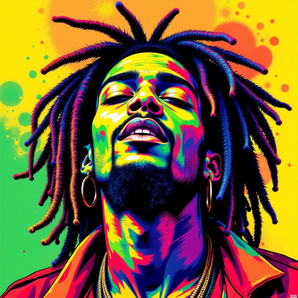 模型创建一个霓虹多彩复古流行反文化风格的拉斯塔法里人物、动物或人类