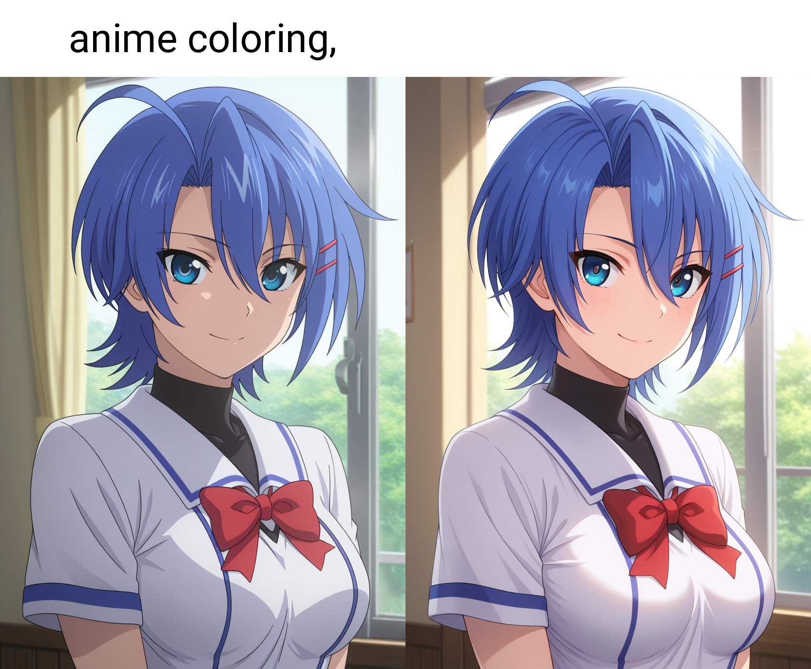 在提示词中使用 "anime coloring" 可使插图更接近动漫风格。