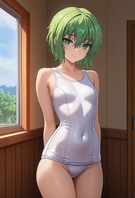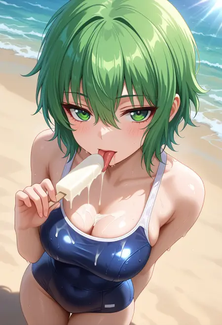 - koroneww, 녹색 눈, 녹색 머리, 단발, 앞머리, 눈 사이의 머리카락,