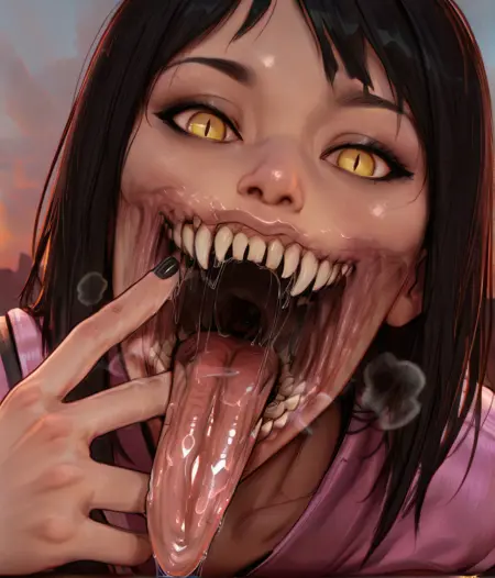 put mask in NEG if planning face reveal - you may have to get creative when doing face prompts as we all know - lips, extra teeth, ???, sharp teeth, saliva. -