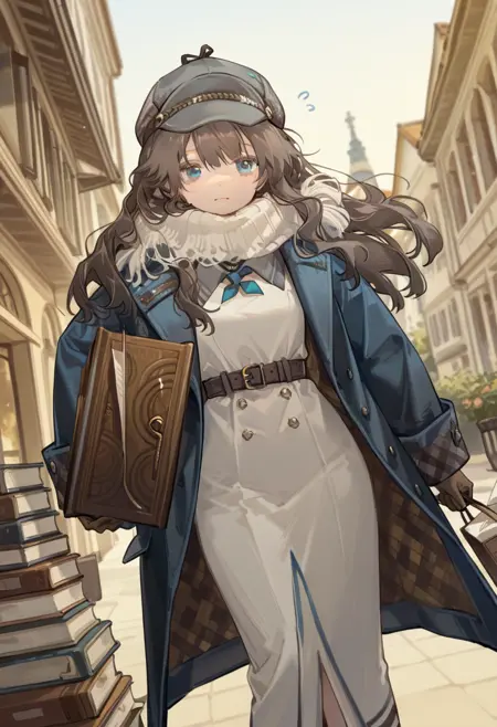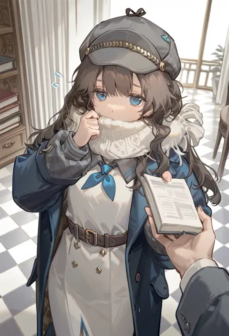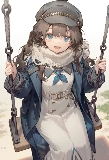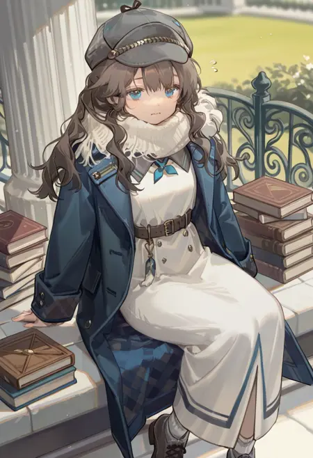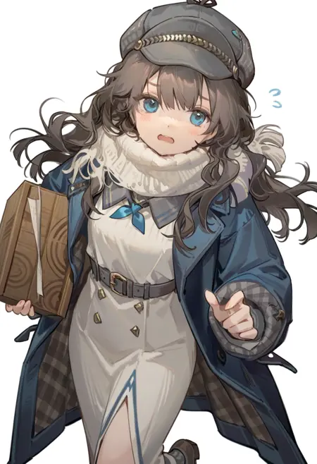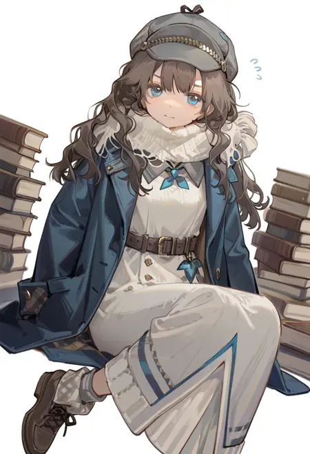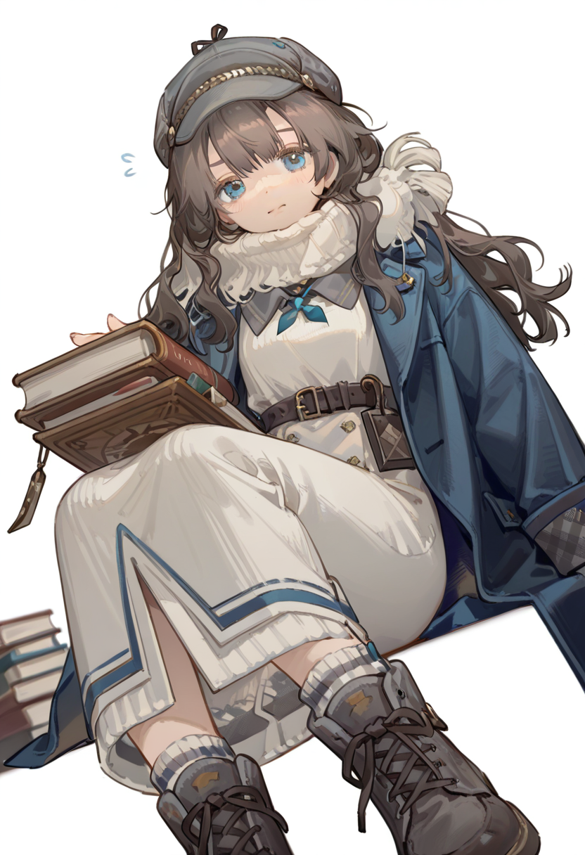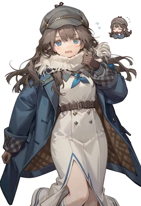 marcus,socks,coat,brown hair,blue eyes,fur-trimmed coat,white long dress,hat,shirt,