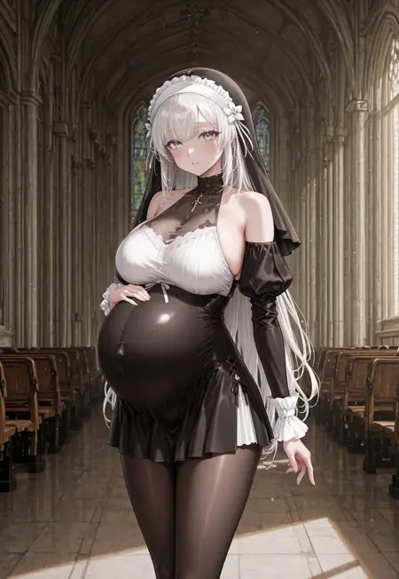 衣装トリガー:修道女, 非伝統的な修道服, 黒のパンティーホース, ハルターネック, 短いスカート,