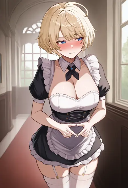 Custom outfit: defMerrin, blonde hair, short hair, ahoge, blue eyes