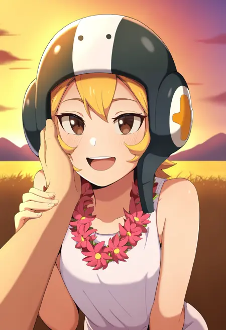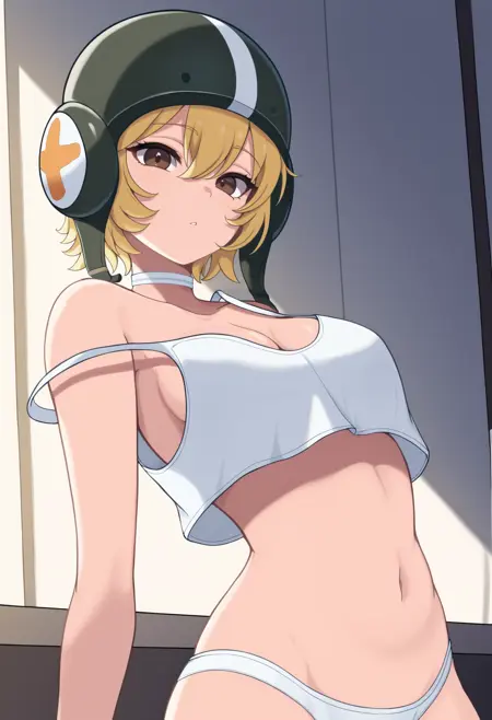 기타 옷차림을 사용할 경우: NGGumJSR, 단발, 금발, 눈 사이의 머리카락, 갈색 눈, 헬멧
