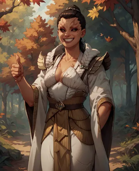 her large hat - was not trained properly in her default attire lora - may not spawn as easy as the other ashrah (3dera) lora