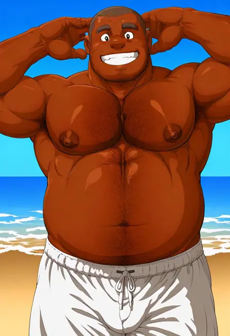 毛发浓密、体味重、包皮负责。虽然外表粗犷阳刚,内心却是个少女,这种极其真实的性格让我在画他时,努力在凶悍的外表下保留一丝可爱感。除了怎么看都不像比义巳年轻这一点外,外貌基本符合我的想象,是我很喜欢的角色。表情容易表现,只要不被体毛的麻烦拖垮,画起来就非常愉快。(尤其是立绘中的“号泣”、活动插图中的“千蔵vs义巳”,我自己也很喜欢)前期他频繁出场,但后期更多是严肃场景,这一点令人印象深刻。重点在于体毛和略带脂肪的微胖体型。