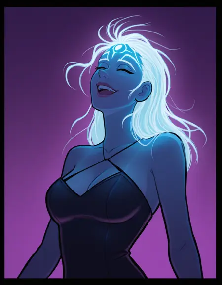 masterpiece, best quality, <lora:DirtymonkeyQuiron_illus:1> dirtyMonkeyQuiron,magic light pours over the forehead of an ecstatic person, leaning back to accept it.