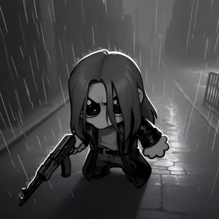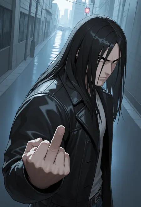 1boy, not_important, male, human, black hair, long hair, hair over face, black eyes