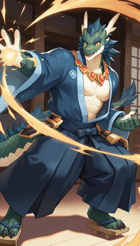 主提示词:塔内勒尔、兽人、龙男孩、肌肉男性、黄色眼白、竖瞳