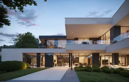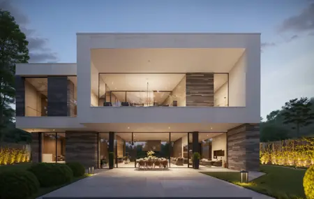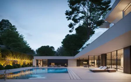 一个用于生成现代风格别墅的lora,使用了同风格及类似角度的素材图进行训练,因此材质和表现风格在裸跑时角度相对固定。