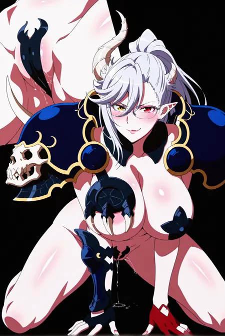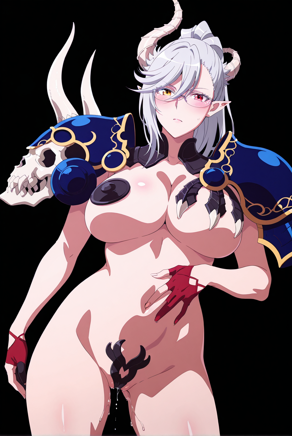 | トレーニングワード | Belial, white hair, grey hair, ponytail, red eyes, heterochromia, yellow eyes, pointy ears, red lips, large breasts, asymmetrical gloves, asymmetrical horns, asymmetrical pauldrons, asymmetrical shoulder armor, claw bra, claw on breast, pauldron's claw, single pasties, nude, horns, glasses, fingerless gloves, armor, demon horns, shoulder armor, red gloves, black gloves, pauldrons, skull, partially fingerless gloves, pasties, bikini armor, maebari, crotch plate, high heels, red footwear, black kneehighsコピーしました! |