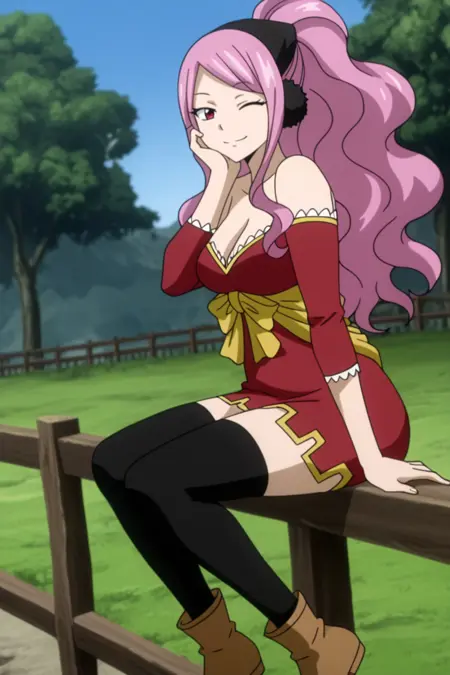 ft_meredi, 1girl, red eyes, pink hair, wavy hair, long hair, ponytail