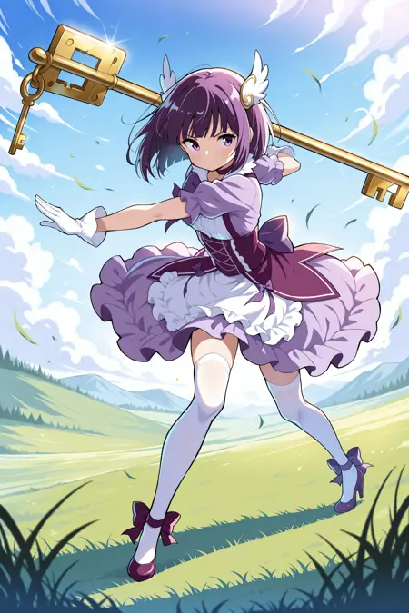 Magica2019: magica2019,翅膀发饰,紫裙,蓬松短袖,项圈,紫蝴蝶结,领结,白手套,紫裙,白长筒袜,高跟鞋