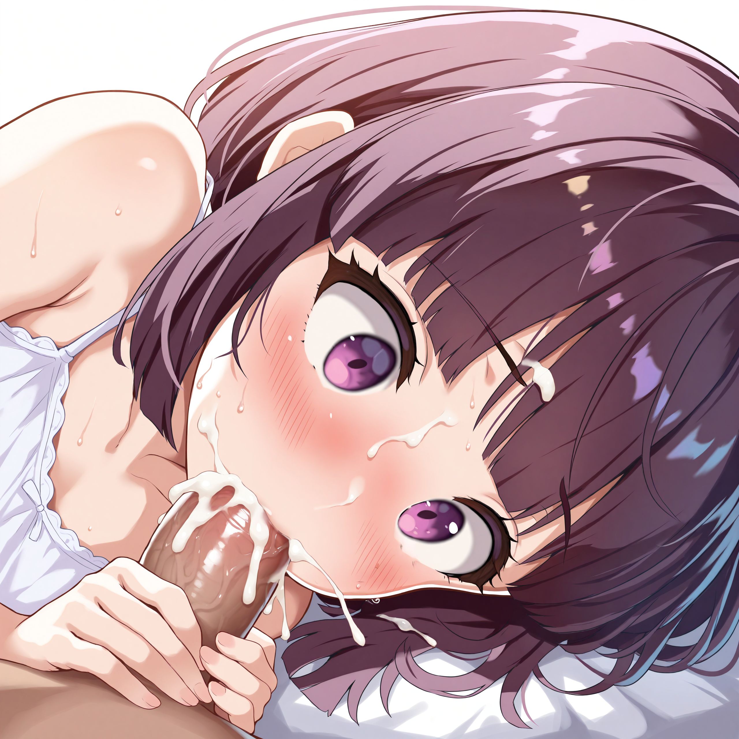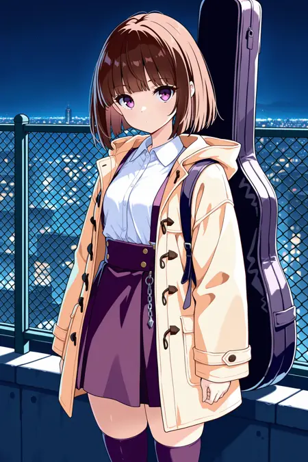小胸部,紫发,棕发,齐刘海,鲍勃头,粉眼,紫眼