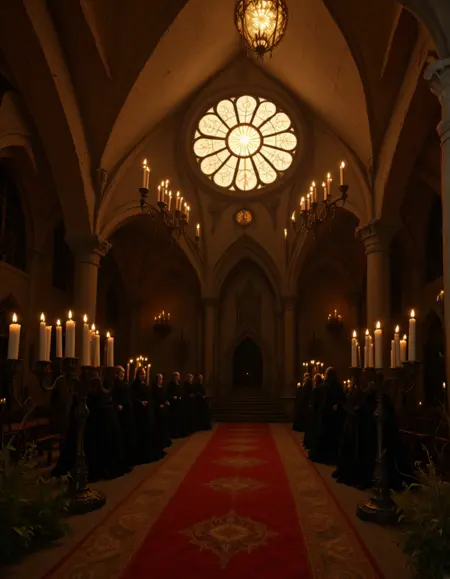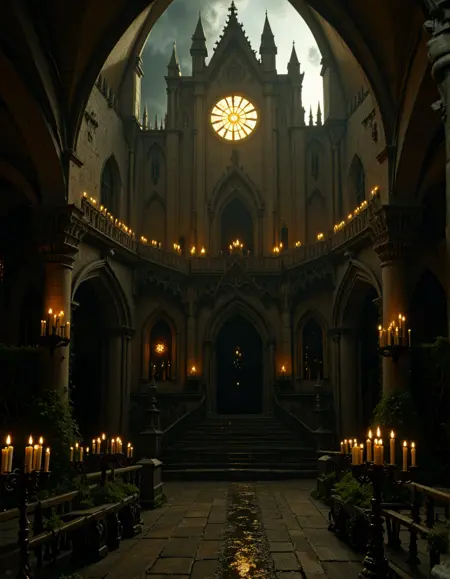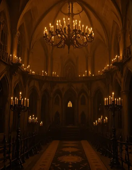 MUR0, very dark, pitch dark, medieval, candles, high ceiling, moon light, moon shades, gold, silver, room, rosace stained glass, arches, medieval furniture, blue, medieval detailed architecture, detailed wall carvings, detailed arches carvings,