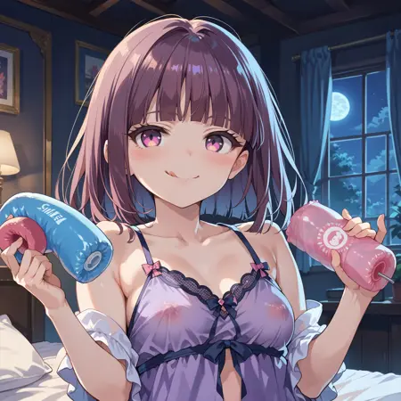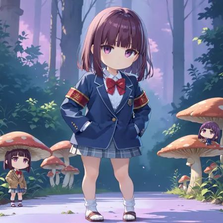 小胸部,紫发,棕发,齐刘海,鲍勃头,粉眼,紫眼