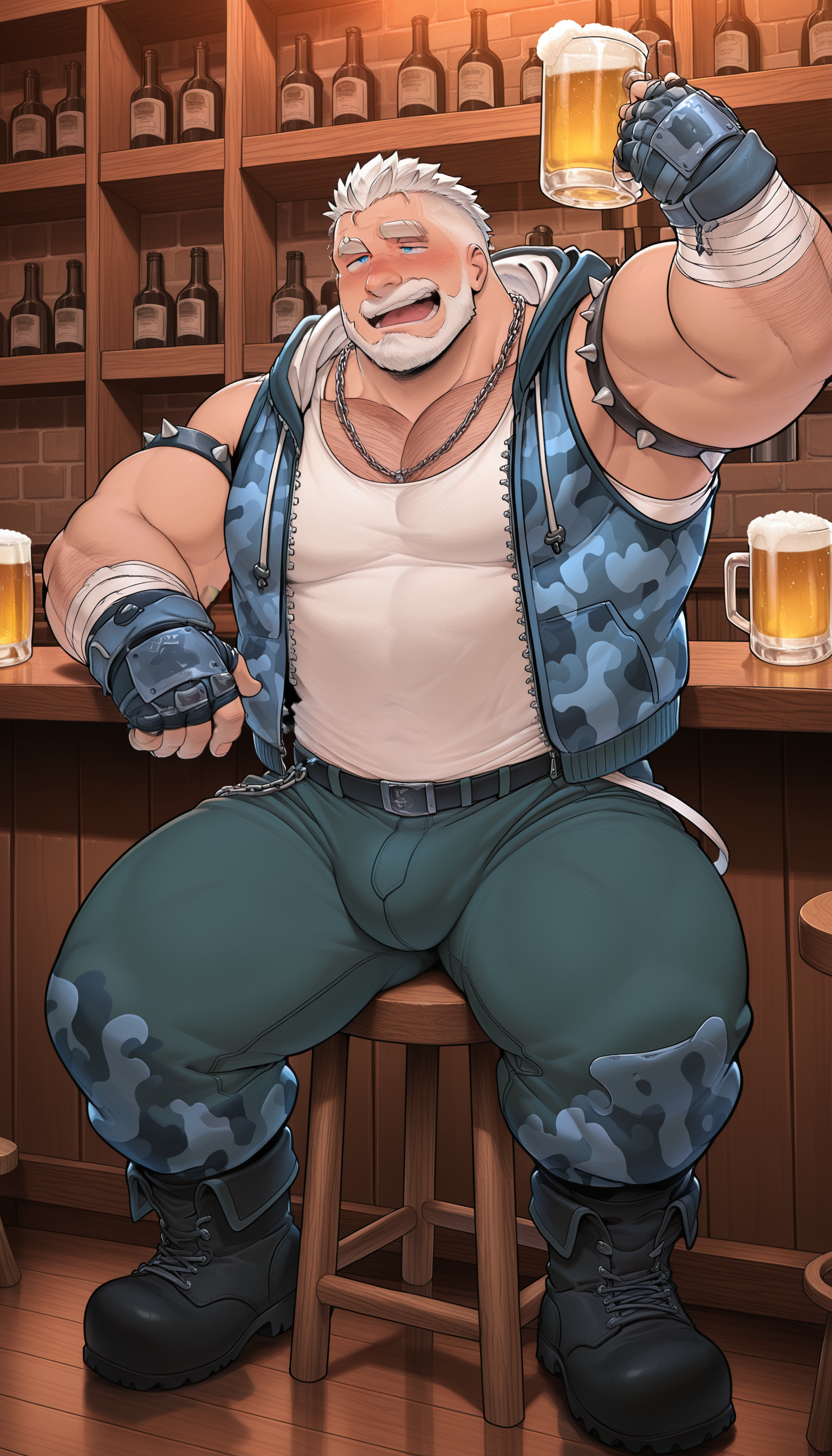 最適なプロンプト:Dward、人間、白髪、顎ひげ、青い目、