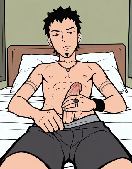 trentlane, male, black hair, black eyes, multiple earrings, goatee