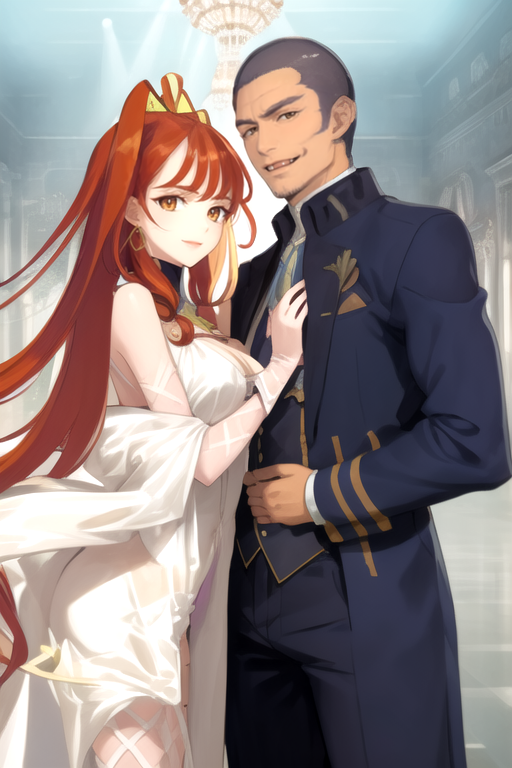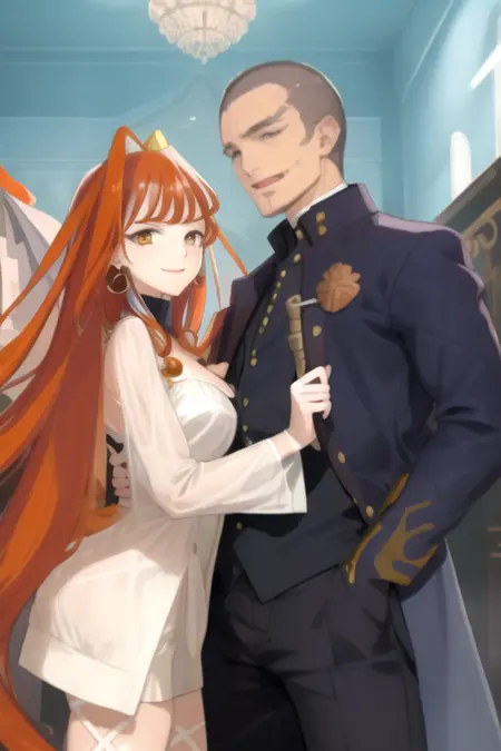 DumasAphrodite, a man and a woman, hetero, standing, smile, cowboy shot
