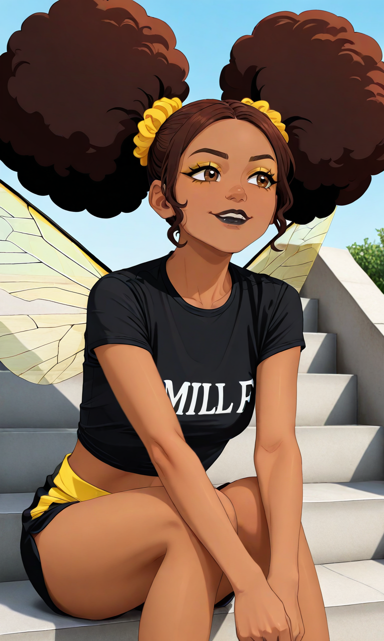| Trained Words | 1girl, bumblebee(dc),helmet, striped headwear, black headwear, yellow headwear, yellow-tinted eyewear, round eyewear, bald,brown eyes, dark-skinned female, insect wings, striped bodysuit,black bodysuit,yellow bodysuit,fingerless gloves, black glovesCopied! |
