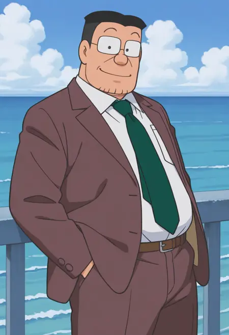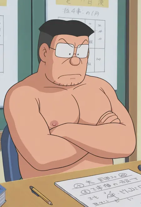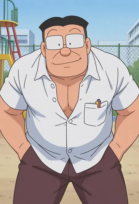 メインキャラクターののび太の先生、大山版スタイル。