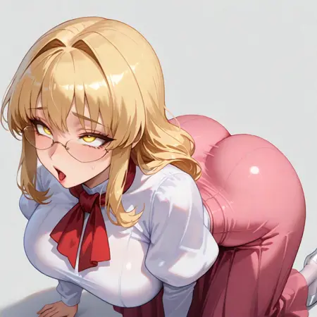 黄色眼睛、金色头发、长发、侧发、刘海、发丝飘动、眼镜,