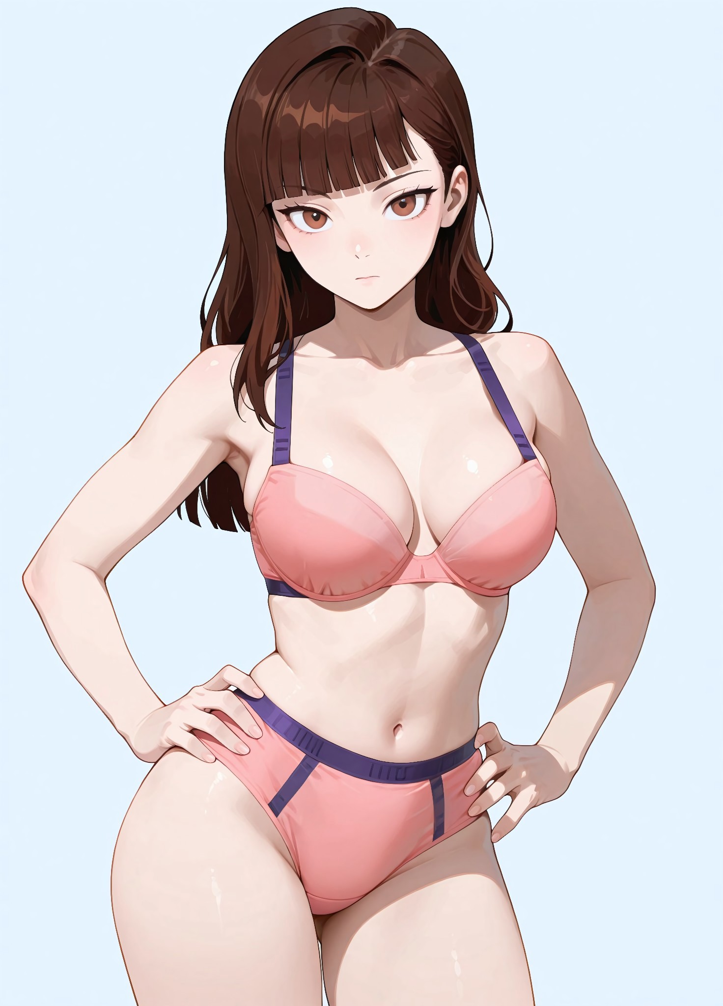 タグ: pl_ps、ピンクのブラ、ピンクのパンツ、紫のストラップ、下着に書かれている、