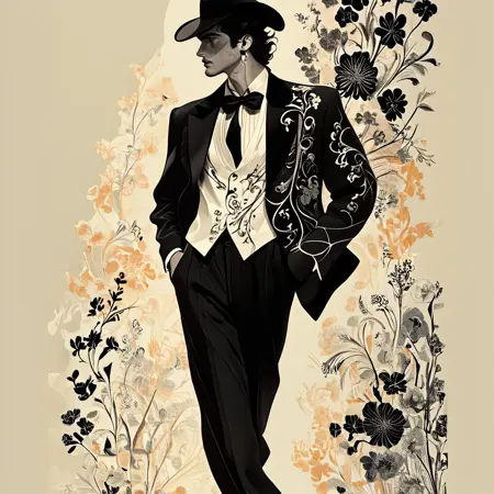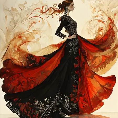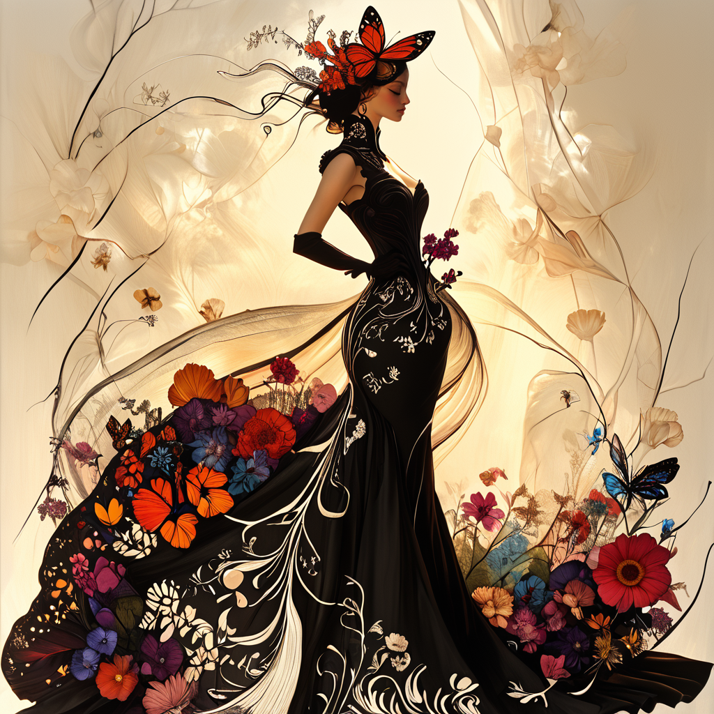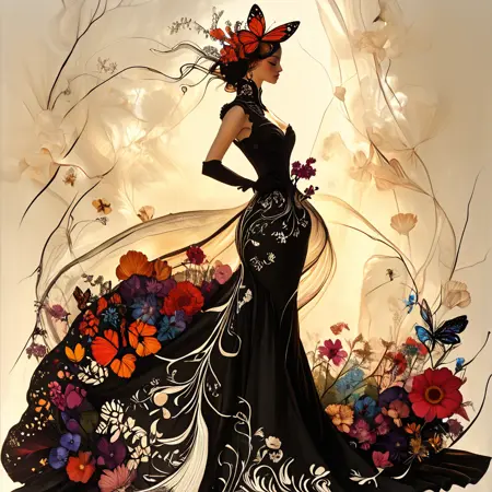 风格化的人物、优雅的姿态与潮流造型,结合流畅的线条、繁复的装饰与有机形态。