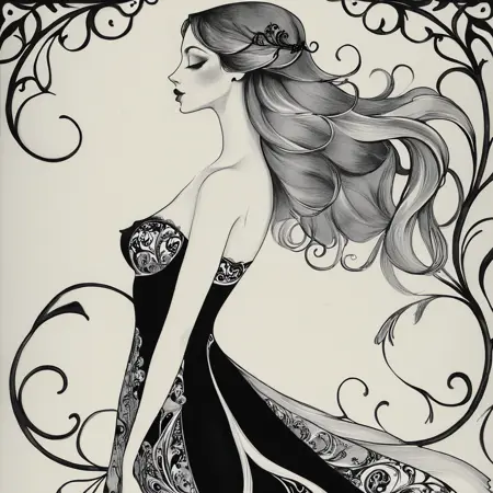 A fusion of contemporary fashion illustration and classic Art Nouveau.