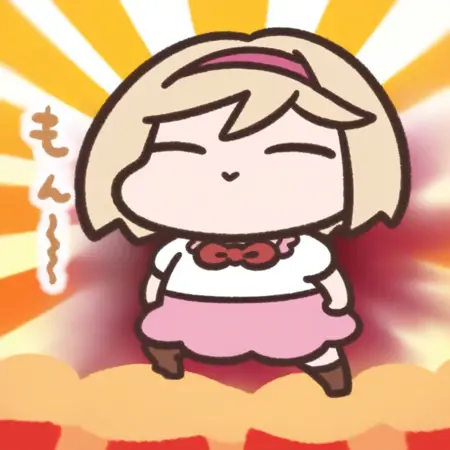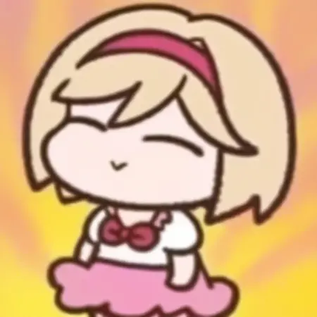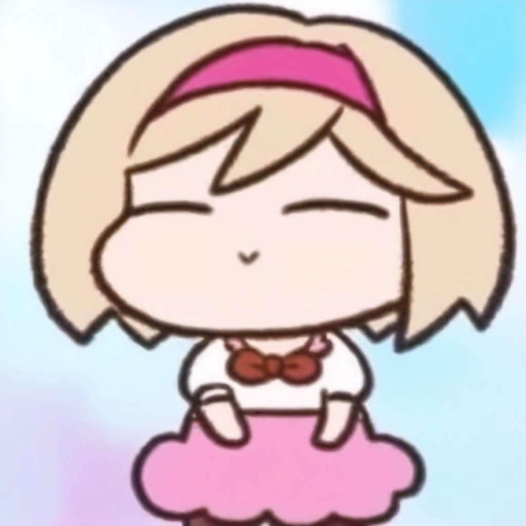 1girl, solo, hairband, pink hairband, djeeta \\(granblue fantasy\\), short hair, closed eyes, blonde hair, skirt, chibi, pink skirt, closed mouth, jita_meme