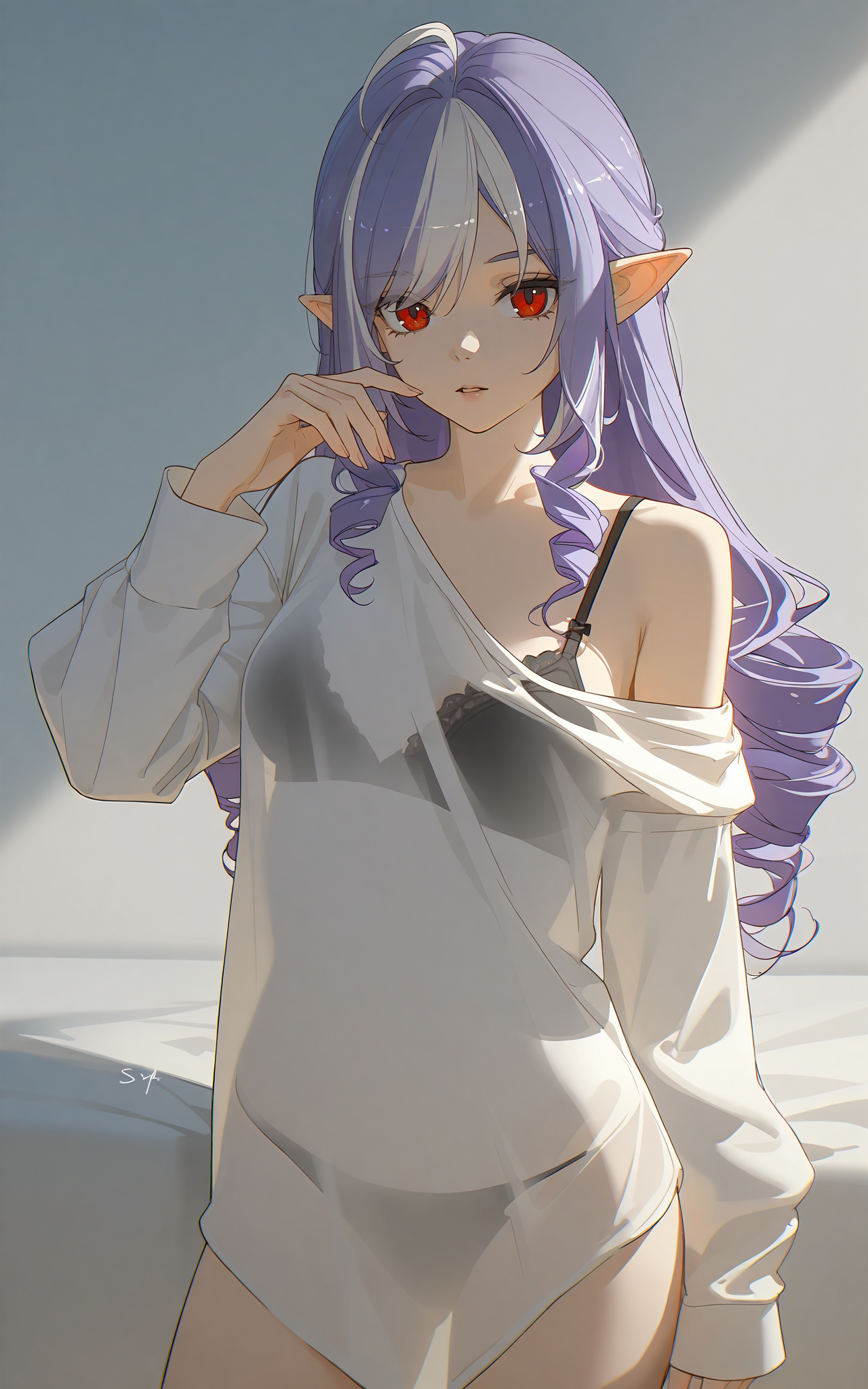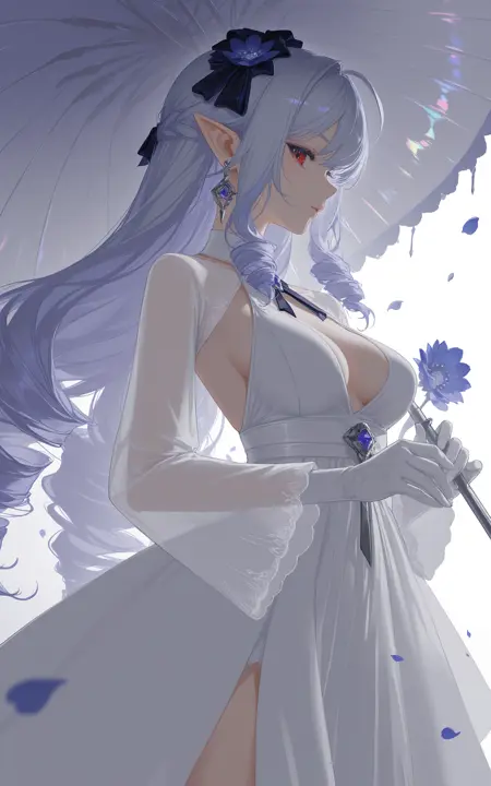 头部:vivian\(zenless zone zero\),1girl,solo,long hair,drill hair,blue hair,white hair,purple hair,multicolored hair,bangs,red eyes,mole under eye,pointy ears,
