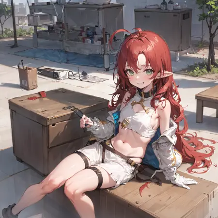 tenninka_v1_underfitingはより多くのタグが必要です。以下のようなタグを適宜選択して使用できます(すべてを必要とするわけではありません):tenninka, 1girl, green eyes, pointy ears, long hair, red hair, brown hair, swept bangs, solo, sleeveless, short sleeves, puffy sleeves, puffy short sleeves, white jacket, smile, grin,