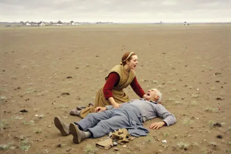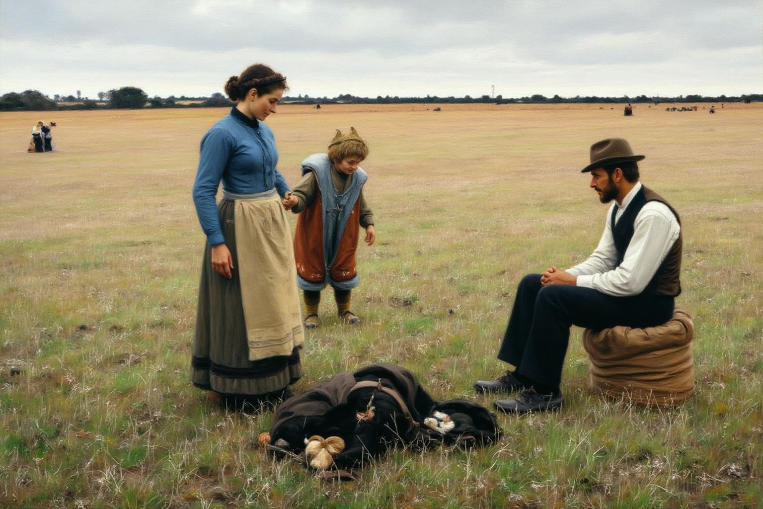 この絵画はデンマークで文化的な象徴となりました。畑で疲労で倒れる男と、絶望のなかで叫ぶ妻が描かれています。この作品の鮮烈なリアリズムと感情的な力は、デンマーク美術における社会的リアリズムの初期かつ最も強力な作品の一つとされています。これらの作品は、同時代のL.A. リングやテオドール・フィリッセンと並べて評価されますが、ブレンデキルデのアプローチはより生々しい感情を伴っていました。
