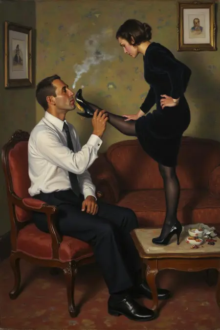 リアリスト的デッサン:彼の人物はしっかりとした存在感を持ち、彫刻家のような形とジェスチャーへの意識で描かれています。