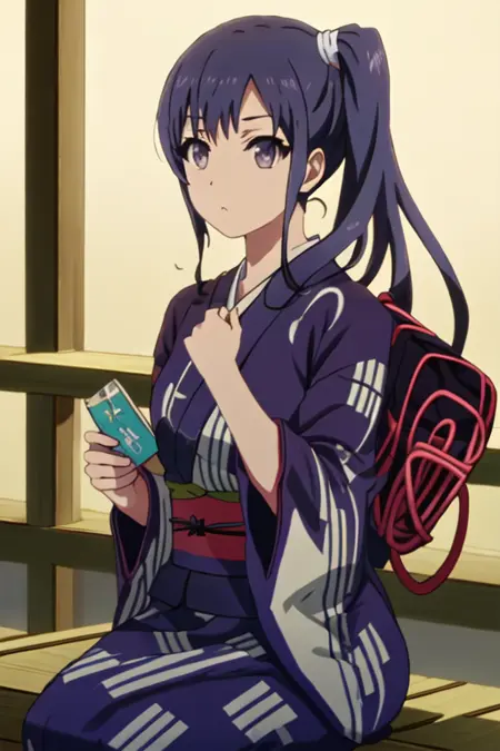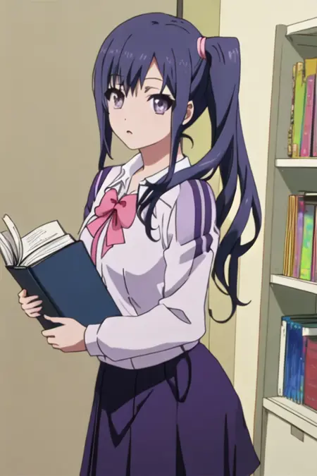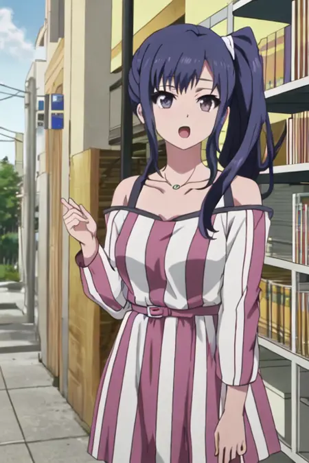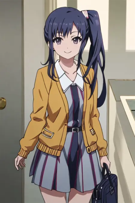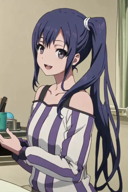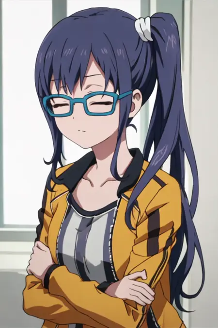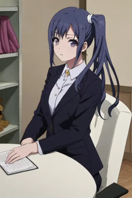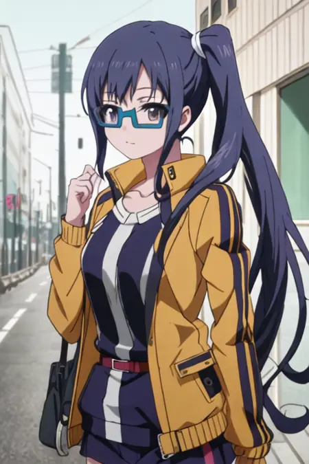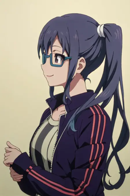 触发词为 imai_midori_shirobako,推荐标签为 best quality, masterpiece, highres, solo, {imai_midori_shirobako:1.15}, long_hair, blue_hair, side_ponytail。