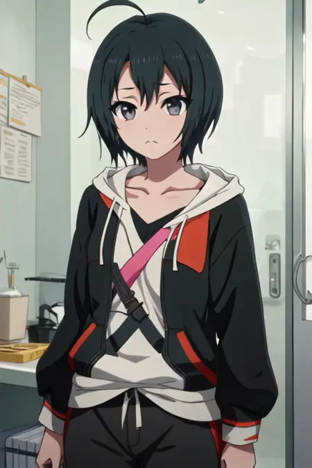 触发词为 todo_misa_shirobako,推荐标签为:best quality, masterpiece, highres, solo, {todo_misa_shirobako:1.15}, black_hair, short_hair, ahoge, black_eyes, grey_eyes。